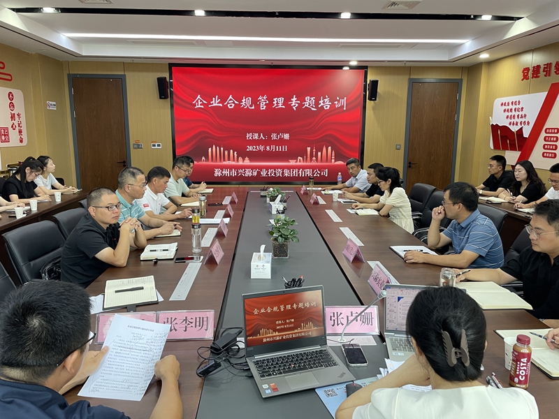 為進(jìn)一步深化集團(tuán)合規(guī)管理,8月11日下午,市礦投集團(tuán)開展企業(yè)合規(guī)管理專題培訓(xùn),集團(tuán)公司副總經(jīng)理張李明主持會(huì)議并講話,集團(tuán)公司本部、各子公司相關(guān)負(fù)責(zé)人及相關(guān)工作人員等30余人參加培訓(xùn)。