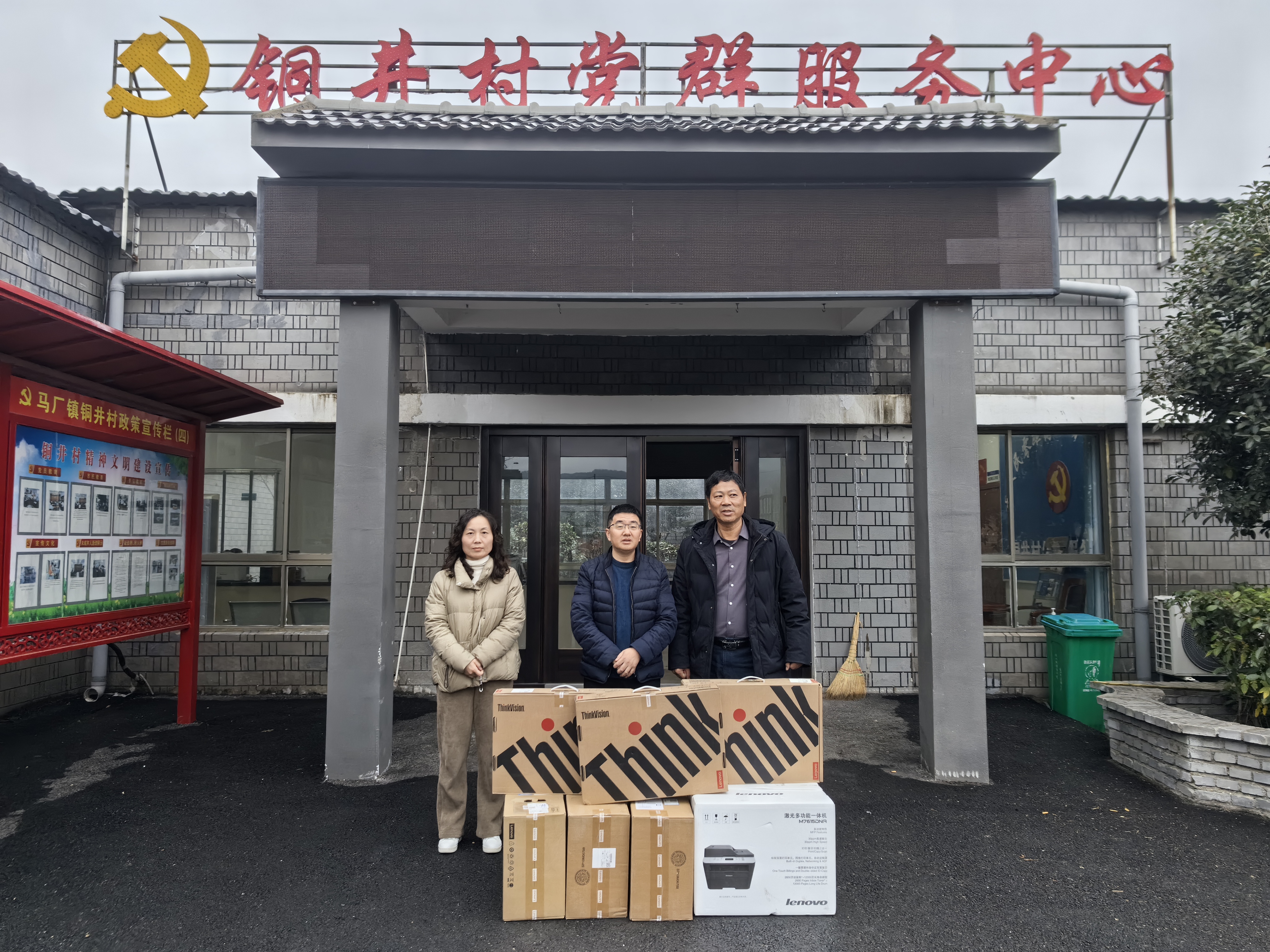 王峰代表集團公司向銅井村捐贈辦公電腦、打印機等辦公設備,并捐贈3萬元資金用于幫助銅井村人居環(huán)境示范點建設。