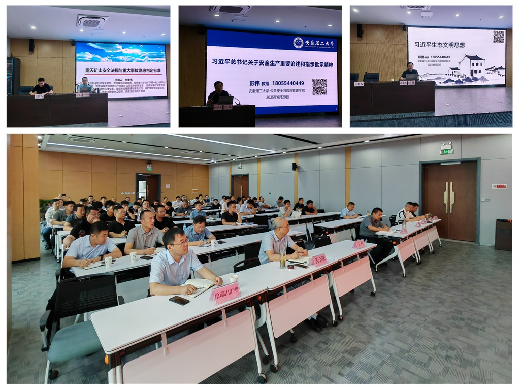 培訓(xùn)邀請了安徽理工大學(xué)公共安全與應(yīng)急管理學(xué)院副院長彭偉、安全科學(xué)與工程學(xué)院研究生與實(shí)驗(yàn)室中心主任李重情進(jìn)行授課,課程包含習(xí)近平總書記關(guān)于安全生產(chǎn)重要論述、習(xí)近平生態(tài)文明思想、礦山行業(yè)有關(guān)安全生產(chǎn)法律法規(guī)、《金屬非金屬礦山重大事故隱患判定標(biāo)準(zhǔn)》等內(nèi)容。