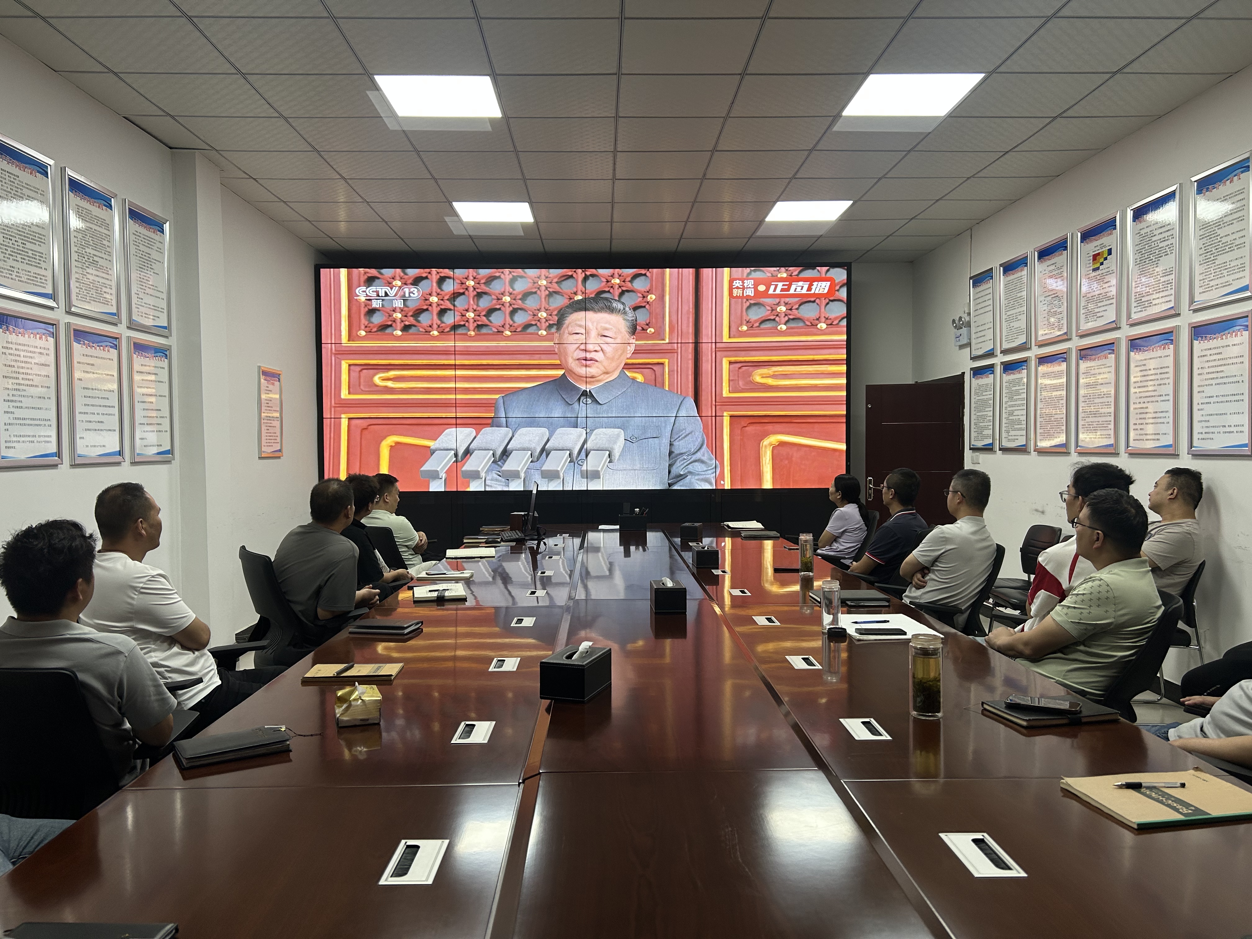 當(dāng)天,各子公司結(jié)合礦山生產(chǎn)實際設(shè)置觀看點,確保一線礦工、技術(shù)人員及后勤保障人員都能準時觀看。上午9時整,紀念大會正式開始。直播畫面中,天安門廣場莊嚴壯麗,長安街盛裝以待,大家全神貫注觀看閱兵盛況,認真聆聽習(xí)近平總書記重要講話,共同感受大國崛起的磅礴力量。當(dāng)看到受閱方隊邁著鏗鏘步伐通過天安門、先進裝備列陣亮相時,大家更是心潮澎湃,為祖國的強大和人民軍隊的威武雄壯而感到無比自豪。